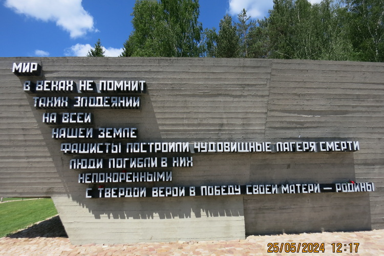 Еще одна тема нашей экскурсии - тема войны - посещение Мемориала "Красный Берег". Этот мемориальный комплекс был открыт в июне 2007 года на месте детского концлагеря, где у детей брали кровь для раненых немецких солдат. Он представлен в виде школьного класса с партами, школьной доской и белым корабликом, символизирующим неисполненные мечты. Цветное стекло, составляющее мозаику на фоне, представляет собой детские рисунки. Архитектор Леонид Левин (один из авторов мемориального комплекса в Хатыни) создал этот мемориал с изысканной простотой, который оставляет глубокое впечатление...